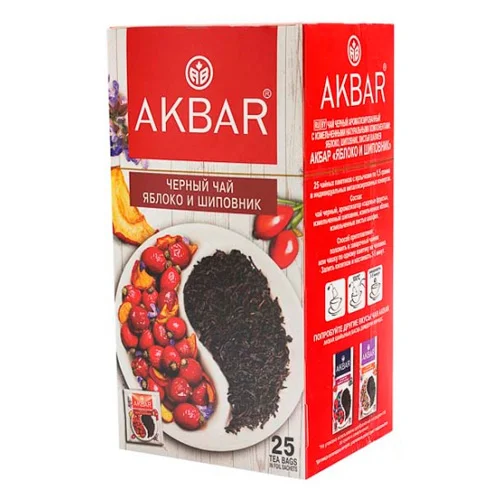 Чай Akbar Яблоко и шиповник, черный, 25 пакетиков