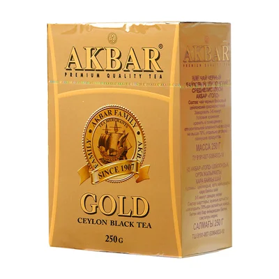 Чай Akbar Gold, 250 г – купаж лучших сортов чая, собранных на горных плантациях острова Цейлон. Черный байховый цейлонский чай отл...