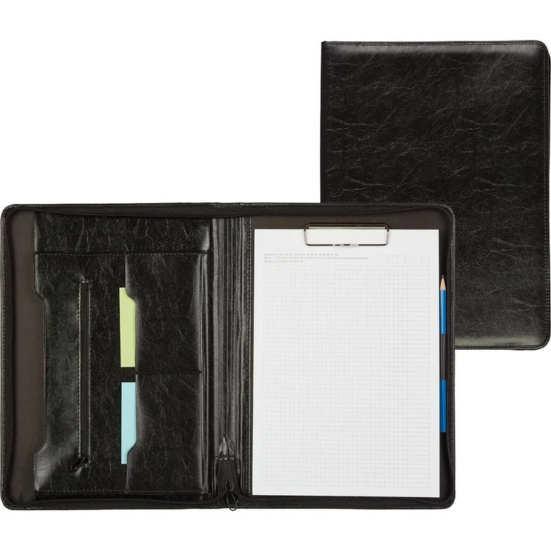 Папка деловая Алекс из искусственной кожи 161 с ручкой черного цвета