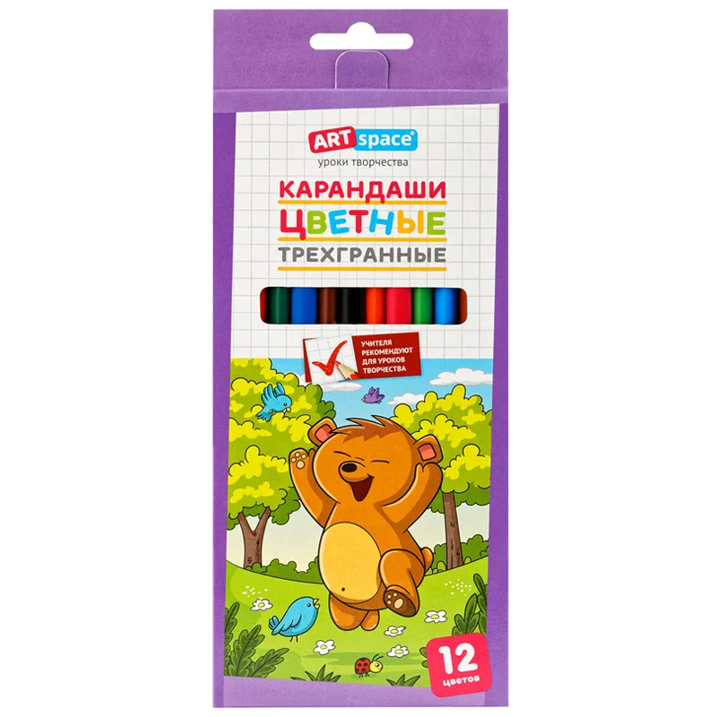 Карандаши цветные ArtSpace 'Лесные жители', 12цв., трехгран., заточен., картон. уп., европодвес