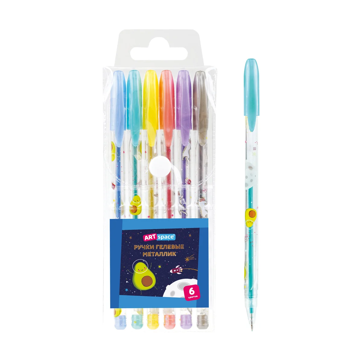 Набор гелевых ручек ArtSpace 'Космические приключения' 06цв., 1,0мм, металлик, ПВХ чехол
