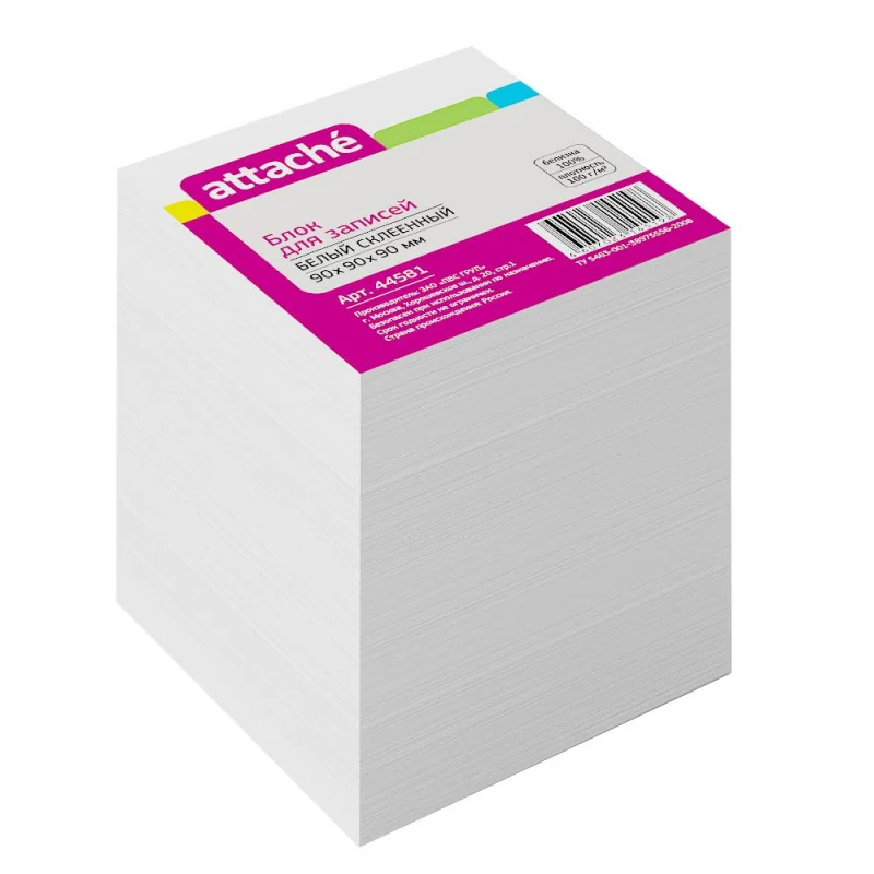 Блок для записей ATTACHE на склейке 9х9х9 белый блок80 г/92