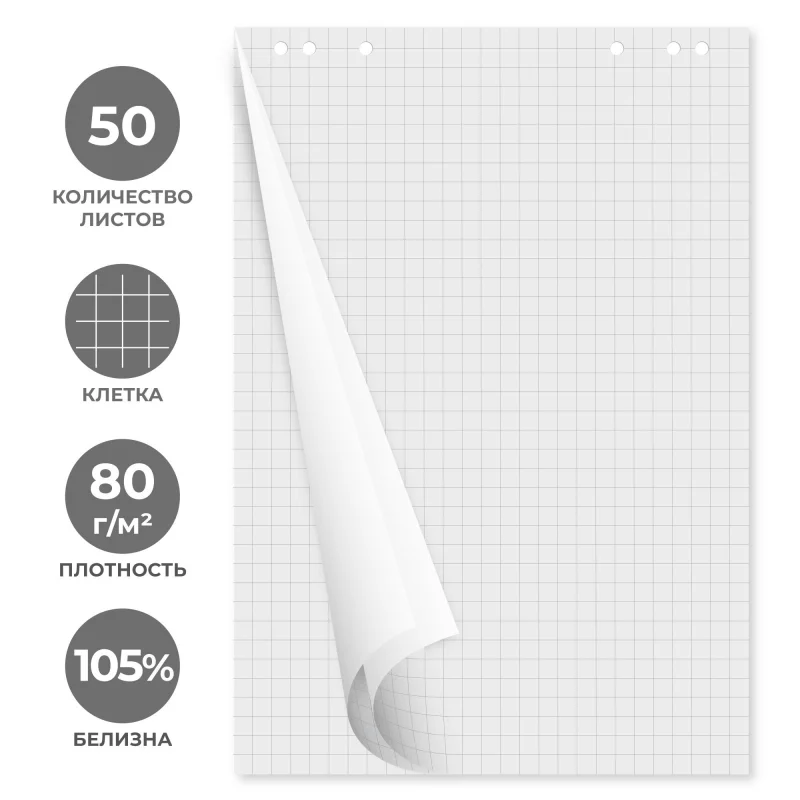 Бумага для флипчартов клетка 67,5х98 50 лист. 80гр