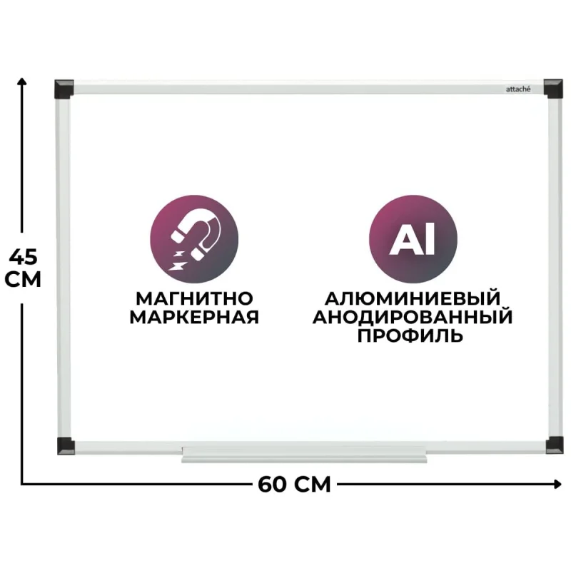 Доска магнитно-маркерная Attache (Attache Economy) Ultra 45x60см односекционная слаковым покрытием (полочка для маркеров) Доска ма...