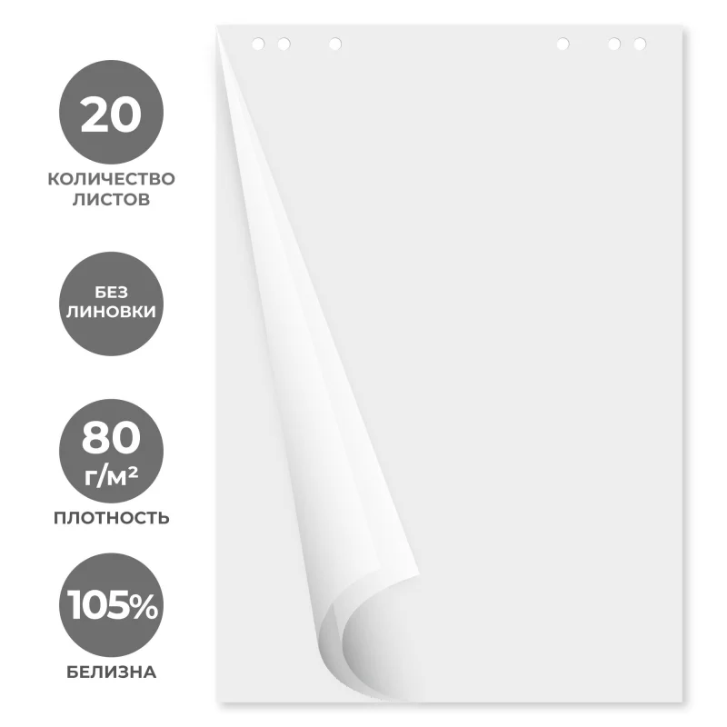 Блок бумаги для флипчартов белый 67,5х98 20 лист. 5 бл/уп 80гр.