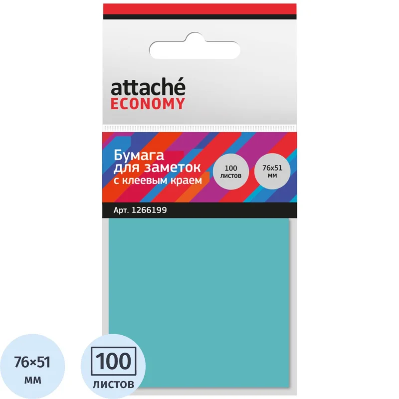 Стикеры Attache Economy с клеев.краем 76x51 мм, 100 лист неоновый синий