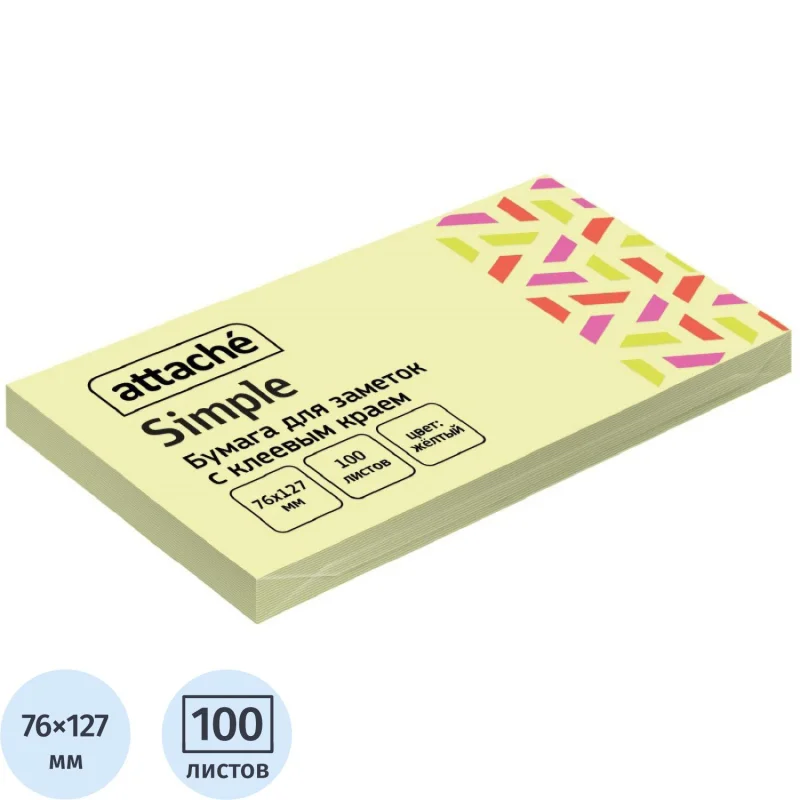 Стикеры Attache выполнены в формате 76x127 мм, желтого цвета, блок состоит из 100 листов. Тон стикеров - пастельный. Плотность бум...