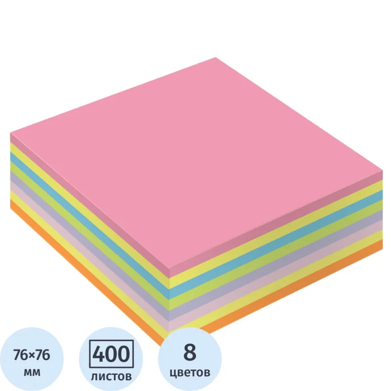 Стикеры Attache Simple куб в формате 76x76 мм, состоят из 400 листов, упакованных в пленку. Стикеры имеют 8 слоев из 8 неоновых цв...