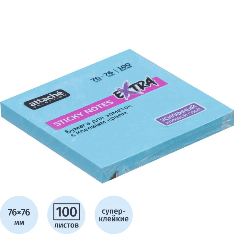 Стикеры Attache Selection Extra в формате 76×76 мм, голубого цвета, 100 листов. Идеально подойдут для сотрудников ...