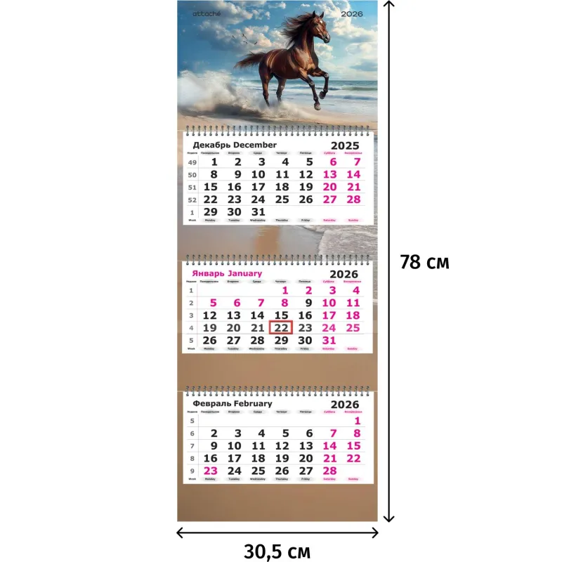 Календарь настенный 3-х блочный 2026 Attache, Галоп, 305х780, 80г
