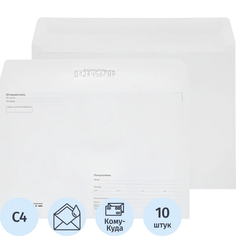 Конверт Куда-Кому С4 декстрин Attache Economy 90 гр 229х324 50шт/уп Конверт почтовый формата С4 с подсказом 'Кому-Куда', размером ...