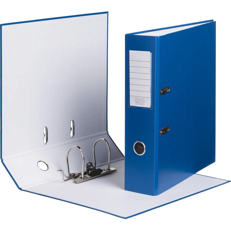 Папка-регистратор Attache Элементари Экономи изготовлена из плотного картона, внешняя сторона покрыта бумвинилом синего цвета...