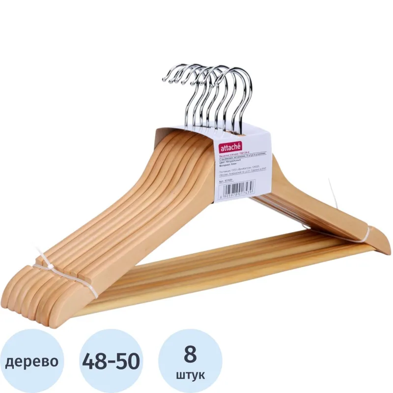 Набор из восьми деревянных классических вешалок со специальными прорезями для юбочных петель будет долго служить Вам, за...