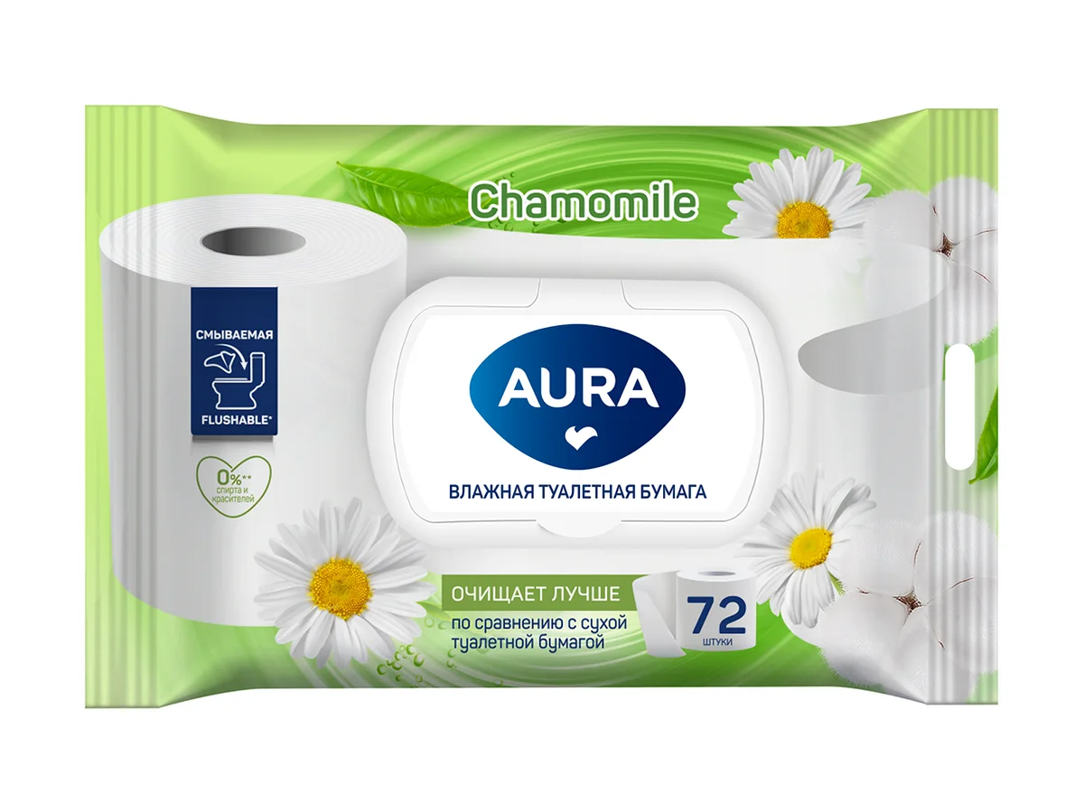 Влажная туалетная бумага Aura Ромашка 72 листа