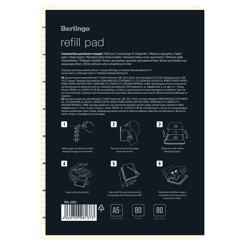 Блок сменный Berlingo для бизнес-тетрадей на кольцах подходит для для замены листов в тетрадях формата A5+. Плотность бумаги соста...