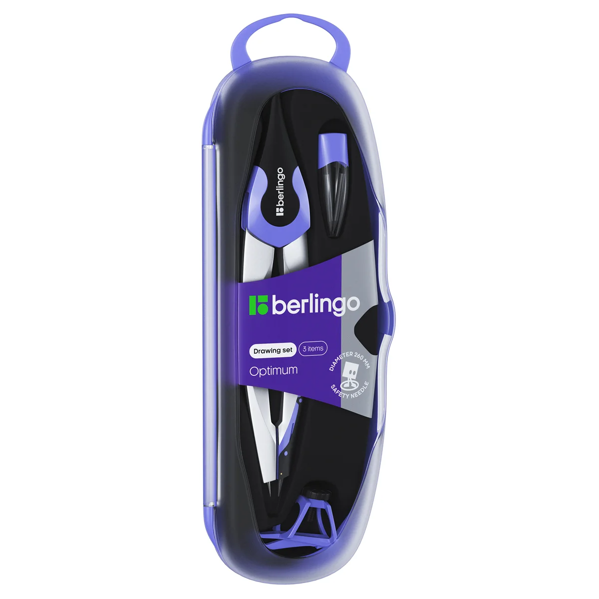 Готовальня Berlingo 'Optimum', 3 предмета, циркуль 135мм, пластиковый футляр, фиолетовый