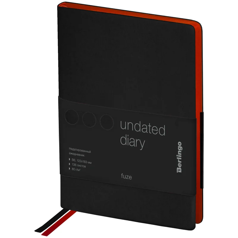 Стильный недатированный ежедневник Berlingo Fuze формата B6 с ультрамягкой обложкой из экокожи. Обложка черного цвета ярко контрас...