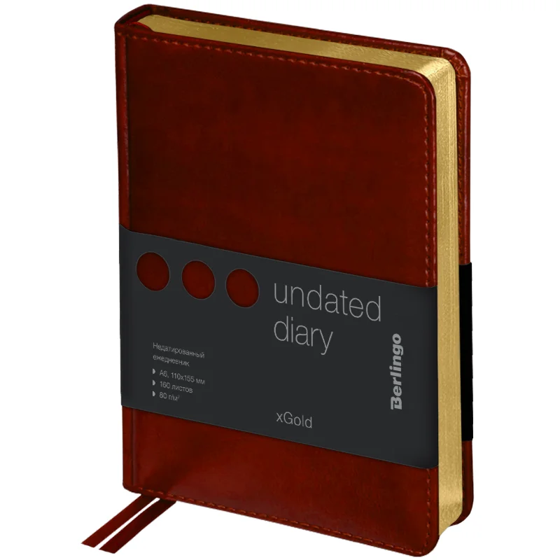 Компактный недатированный ежедневник Berlingo xGold формата А6 с твердой обложкой из экокожи и поролоновой прослойкой идеален для ...