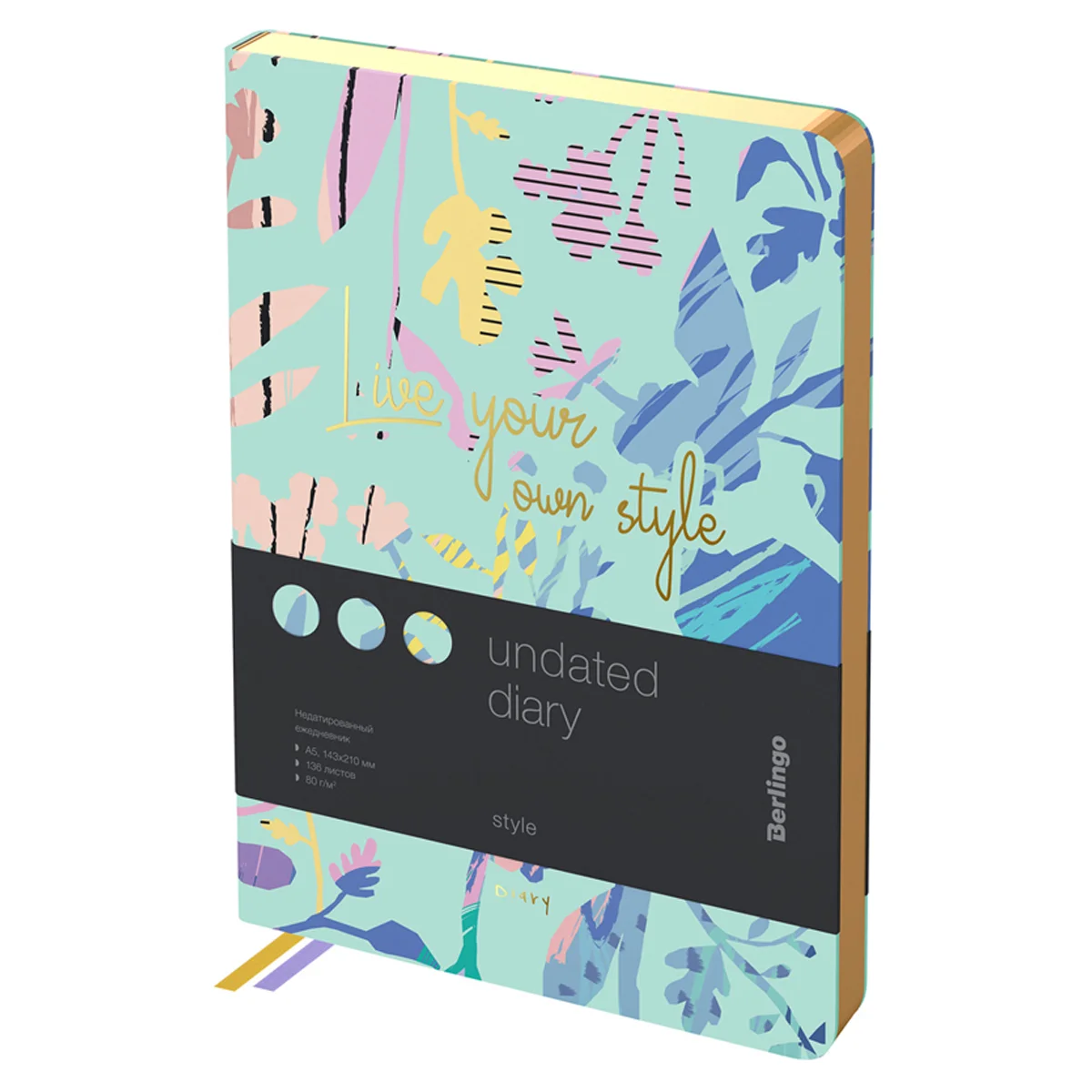 Недатированные ежедневники Berlingo 'Style' в мягкой обложке из искусственной кожи с ярким дизайном. Мятный цвет фона обложки. Фол...