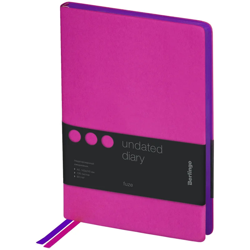 Стильный недатированный ежедневник Berlingo Fuze формата А5 с ультрамягкой обложкой из экокожи. Обложка цвета фуксии ярко контраст...