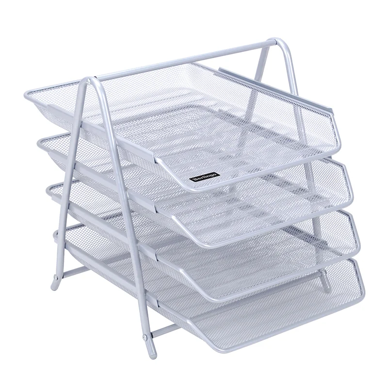 Лоток для бумаг горизонтальный Berlingo 'Steel&Style', 4 секции, металл, серебристый