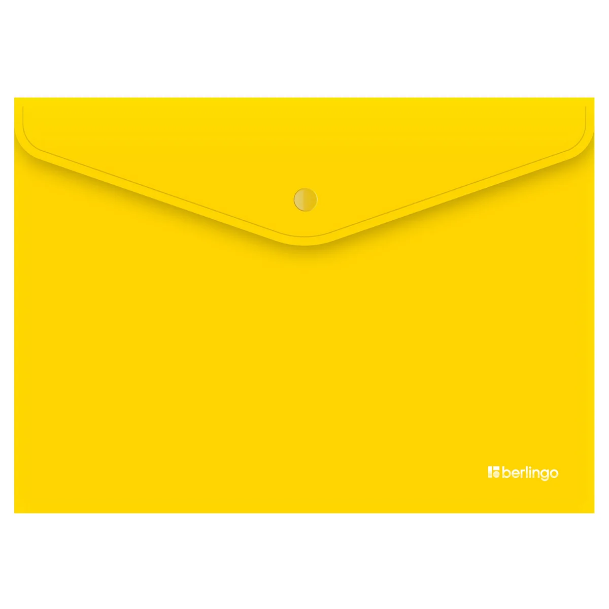 Папка-конверт на кнопке Berlingo 'City Style', А4, 200мкм, непрозрачная, желтая