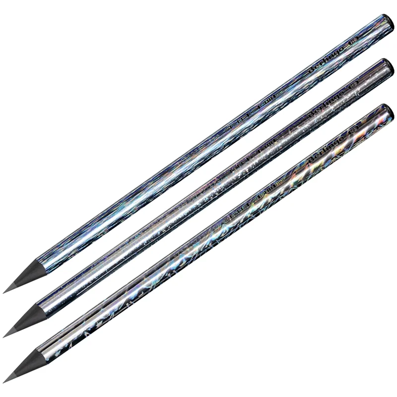 Чернографитный ударопрочный карандаш Berlingo 'Black Diamond' из черного дерева, с заточкой. Уникальная голографическая лазерная п...