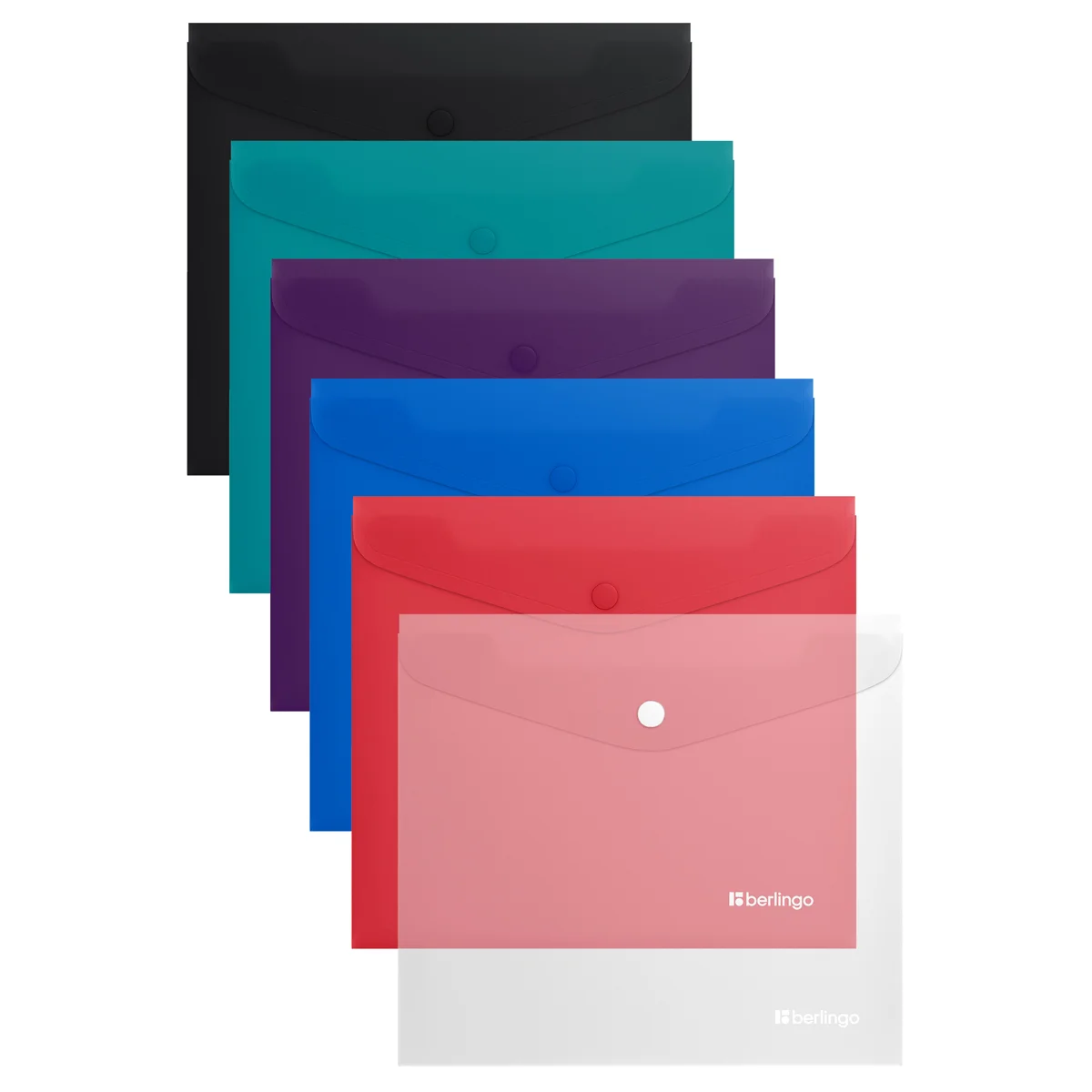 Пластиковая папка-конверт на кнопке Berlingo 'Soft Touch' формата А5+. Уникальная матовая бархатистая софт-тач поверхность. Ассорт...