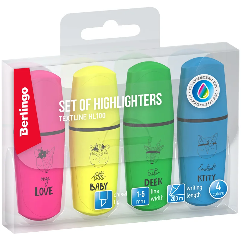 Набор текстовыделителей Berlingo 'Textline HL100' мини, 04цв., 1-5мм, европодвес