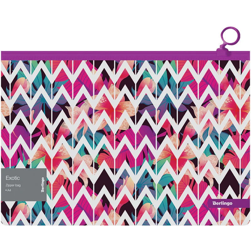 Папка-конверт пластиковая на молнии Berlingo 'Exotic' формата А4 с рисунком. Белый цвет внутренней поверхности. Надежная молния с ...