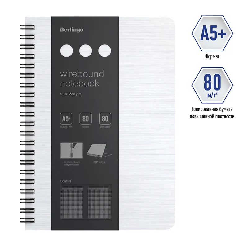 Бизнес-тетрадь А5+, 80л., Berlingo 'Steel&Style', клетка, на гребне, 80г/м2, пластик. (полифом) обло