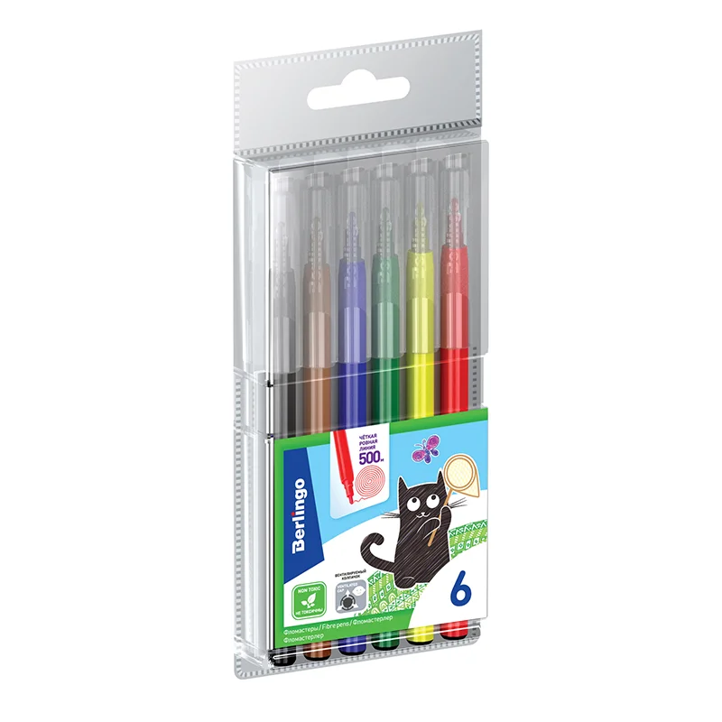 Фломастеры Berlingo 'Жил-был кот', 06цв., смываемые, блистер