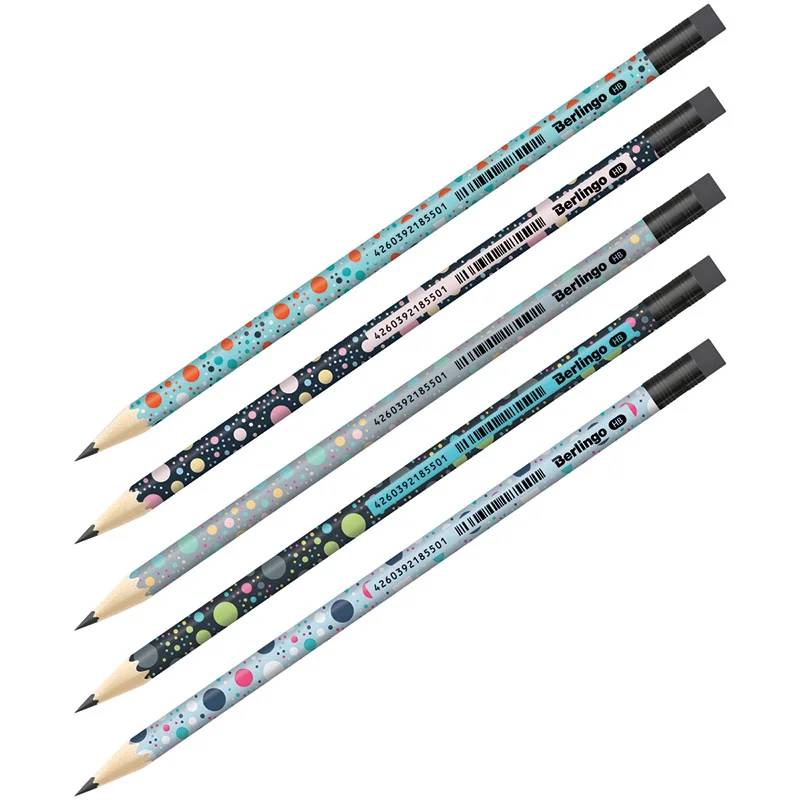 Чернографитный ударопрочный карандаш Berlingo 'Points' из липы, с заточкой и ластиком. Матовое покрытие корпуса, дизайны ассорти. ...