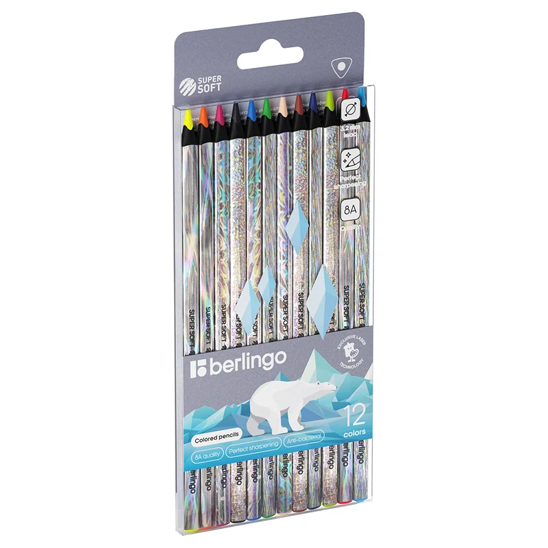 Карандаши цветные Berlingo 'SuperSoft. Starlight', 12цв., трехгран., черное дерево, лазерная пленка