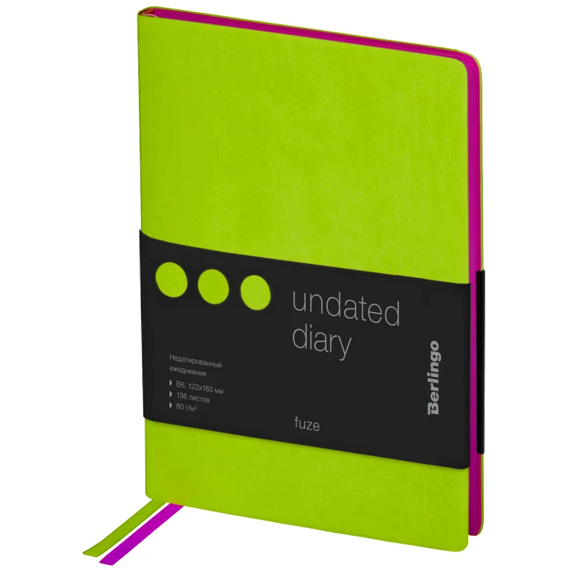 Стильный недатированный ежедневник Berlingo Fuze формата B6 с ультрамягкой обложкой из экокожи. Обложка салатового цвета ярко конт...