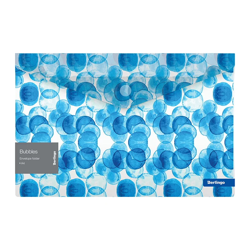 Папка-конверт на липучке Berlingo 'Bubbles' А4, 180мкм, прозрачная, с рисунком