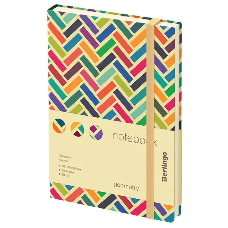 Компактная записная книжка Berlingo Geometry формата А6 с полужесткой обложкой и вертикальной фиксирующей резинкой идеально подойд...