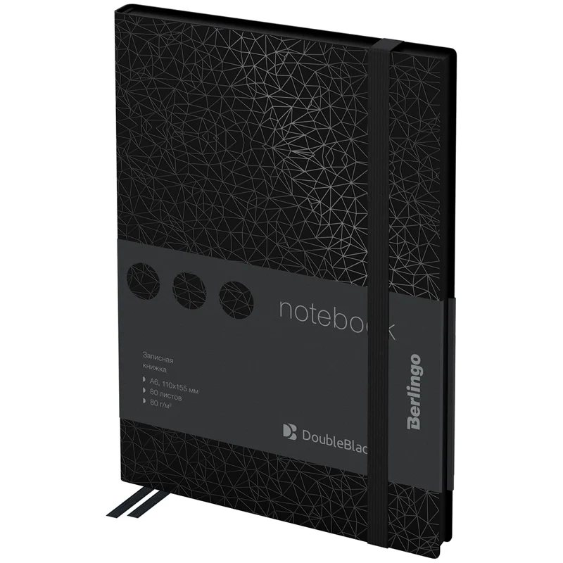 Записная книжка А6 80л., кожзам, Berlingo 'DoubleBlack', черный срез, черная, с рисунком