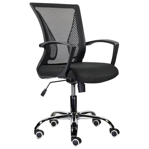 Кресло BRABIX 'Wings MG-304', пластик черный, хром, сетка, черное, 532016