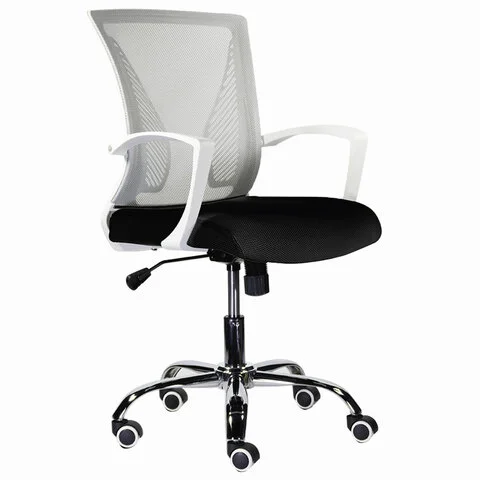 Кресло BRABIX 'Wings MG-306', пластик белый, хром, сетка, серое/черное, 532010