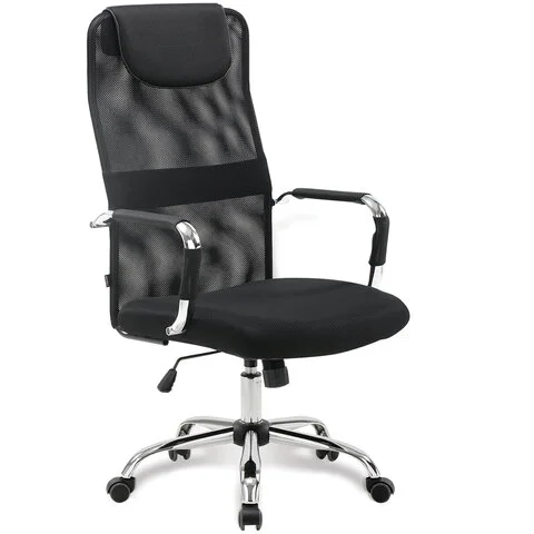 Кресло офисное BRABIX 'Fit EX-514', с подголовником, хром, черное, 531949