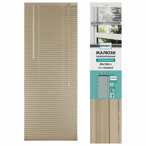 Жалюзи горизонтальные BRABIX 80х160 см, АЛЮМИНИЙ, цвет бежевый, 608641