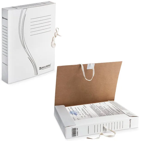 Папка архивная с завязками А4 (325х260 мм), 45 мм, до 400 листов, плотная, микрогофрокартон, БЕЛАЯ