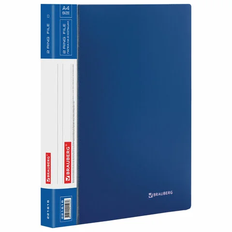 Папка на 2 кольцах BRAUBERG 'Стандарт', 25 мм, синяя, до 170 листов, 0,8 мм, 221615