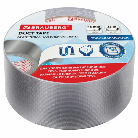 Клейкая АРМИРОВАННАЯ лента 48 мм х 25 м, ТКАНЕВАЯ ОСНОВА, BRAUBERG, 606770