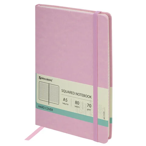 Блокнот А5 (148x218 мм), BRAUBERG 'Metropolis Special', под кожу, 80 л., резинка, клетка, розовый, 1