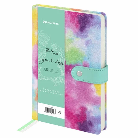 Ежедневник недатированный А5 138х213 мм BRAUBERG 'Nebula', под кожу, застежка, 160 л., зелёный микс