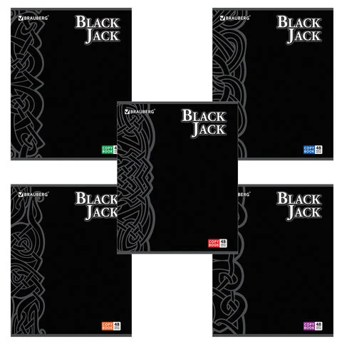 Тетрадь А5, 48 л., BRAUBERG скоба, клетка, выборочный лак, БЛЭК ДЖЭК, 401824