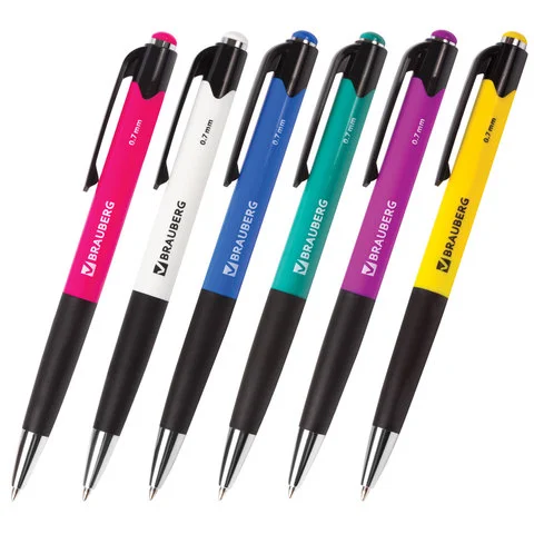 Ручка шариковая автоматическая с грипом BRAUBERG 'Concept', СИНЯЯ, корпус ассорти, узел 0,7 мм, лини