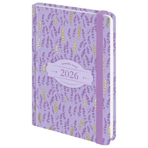 Ежедневник датированный 2026 с резинкой 145х203 мм, А5, BRAUBERG твердый, фольга, 'Лаванда', 117344